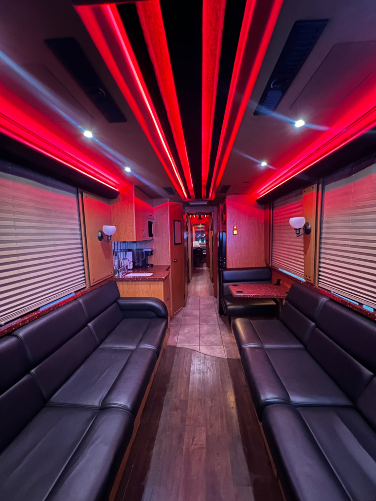 Back Lounge: Optional Queen Sleeper, color changing mood lighting, 32 inch Smart TV W/ Netflix, Hulu, Amazon Prime, Sony